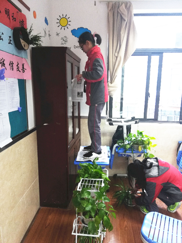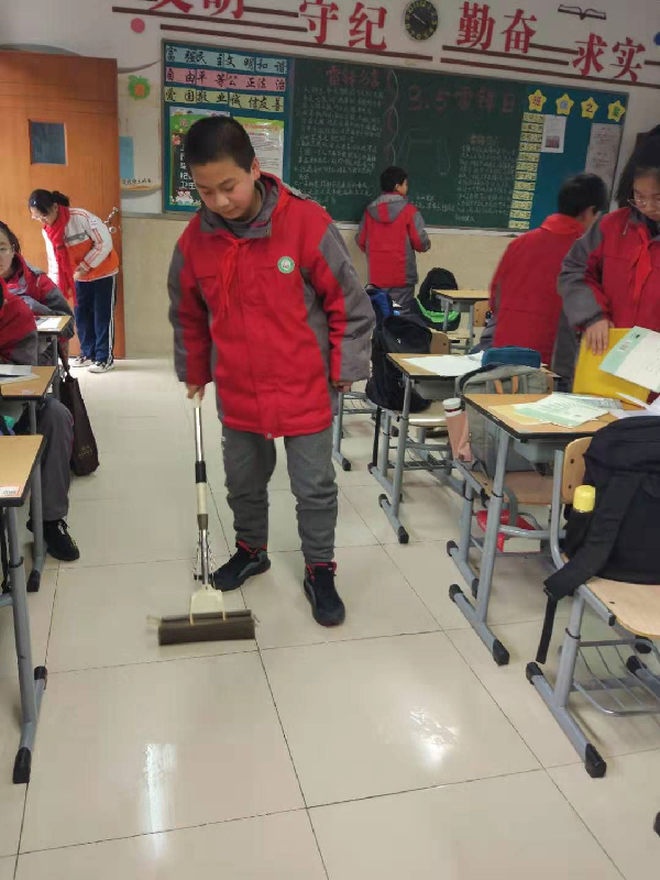 此次活动分为扫地、拖地、擦桌椅以及对室内的教学设备进行清理几部分。同学们以班级为单位准备清洁工具,每班又进行了合理的任务划分,有的扫地拖地、有的擦窗擦门、有的清理杂物、有的整理桌椅,还有的清理教学设备。同学们积极主动,互帮互助,高效率地完成了任务,使教室内外的环境焕然一新。