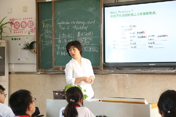 特别是吴老师在带学生一起复习和归纳动词三单形式的变化规则时,强调了动词后s和es的发音,并让学生跟读和纠正学生的错误发音,让尽可能多的学生加强平时的语音意识。朱老师赞许了这样的设计,她表示,这样坚持做下去,肯定会对学生们今后的语音方面有很大的帮助。